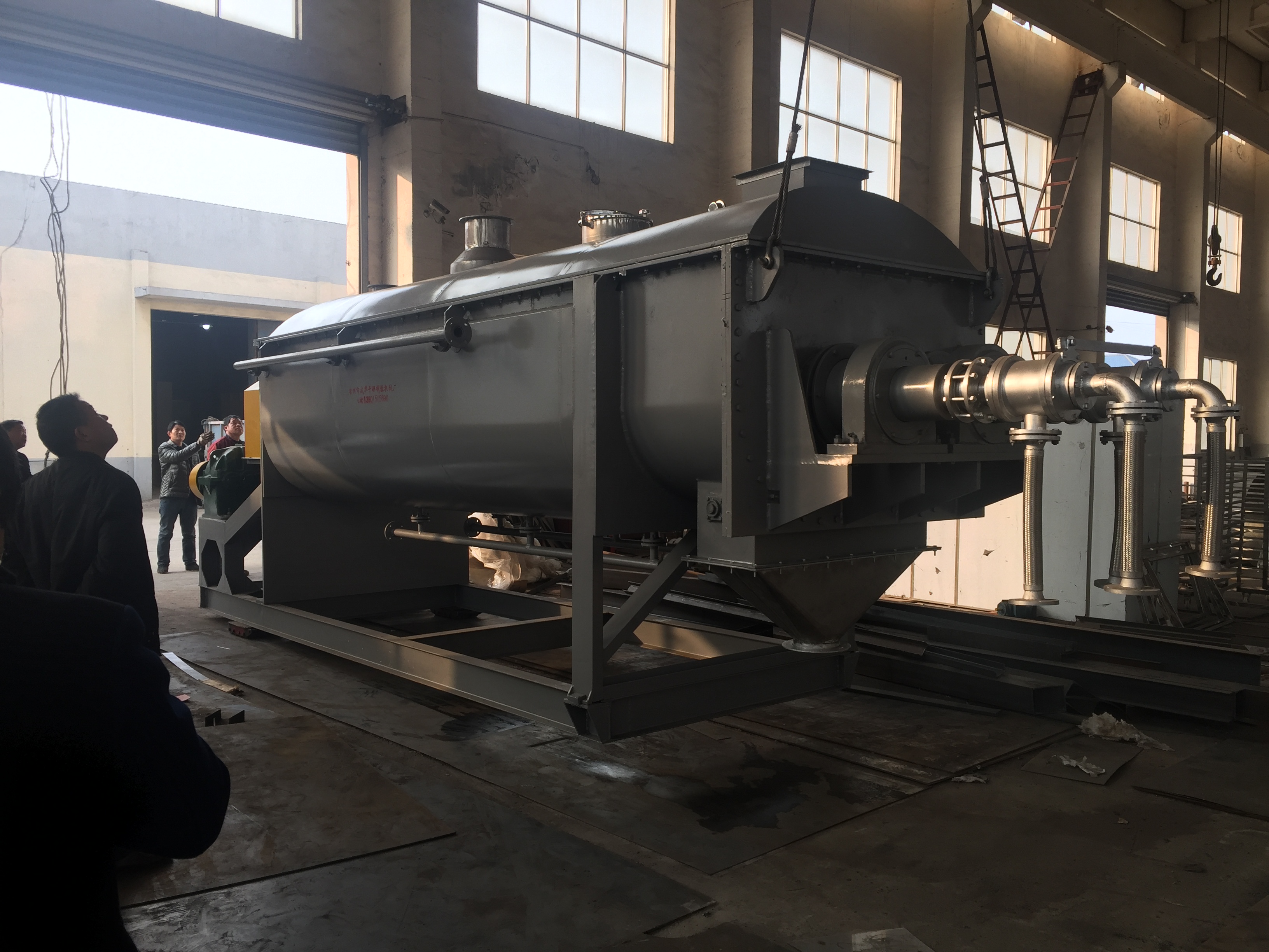 空心槳葉干燥機是一種在設備內(nèi)部設置攪拌槳,使?jié)裎锟圃跇~的攪動下,與熱載體以及熱表面充分接觸,從而達到干燥目的的低速攪拌干燥器。結構形式一般為臥式雙軸。槳葉式干燥器分為熱風式和傳導式。熱風式即通過熱載體(如熱空氣)與被干燥的物料相互接觸并進行干燥,在傳導式中熱載體并不與被干燥的物料直接接觸,而是熱表面與物料相互接觸。傳導式的優(yōu)點是物料不易被污染,排氣量小,熱效率高,體積相對小,有利于節(jié)約能源及防止空氣污染.